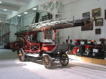 Obrotowa drabina, którą od 1996 roku można podziwiać w Centralnym Muzeum Pożarnictwa w Mysłowicach powstała na zamówienie Ochotniczej Straży Pożarnej w Bytomiu – Karbiu, gdzie została dostarczona w czerwcu 1912 roku. Do jej obsługi potrzebnych było czterech strażaków. Maksymalny zasięg drabiny wynosił 20 m. Czas podstawienia i wysunięcia drabiny to 50 sekund, złożenia 45 sekund, a pełnego obrotu 20 sekund. Drabinę zamontowano na 4 – kołowej konstrukcji o wymiarach 670 cm na 175 cm wykonanej z drewna i stali. Z tyłu znajduje się mechanizm, dzięki któremu drabina mogła obracać się wokół własnej osi. Mechanizm obrotowy regulowano za pomocą trzech korb. Z przodu i w centralnej części zamontowano drewniane ławeczki, na których mieściło się czterech członków załogi. Pod ławką znajdującą się z przodu umieszczono skrzynkę na narzędzia. Po obu stronach drabiny zainstalowano barierki ułatwiające strażakom wspinanie się po niej oraz dzwonek sygnalizujący maksymalny wysuw drabiny.